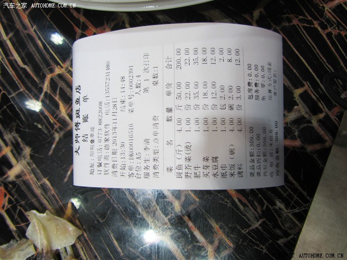 盛惠309元。斑鱼的味道不错,比之前“彭大姐”的鲤鱼贵,但觉得更抵食(划算),亲一定要试试。肥牛应是人工压脂制成的,和“小肥羊”里的是一类货色,可以不要。话说回来,据说真正的天然肥牛狠贵狠贵哦,小生屌丝一枚,没幸尝试。大师傅在当地有很多家。西街就有它的形象店。也有“大师傅啤酒鱼”。应该都是实惠+干净型的消费。
