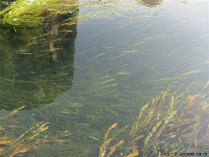 清澈见底的河水,可以清晰地看见河底的水草。