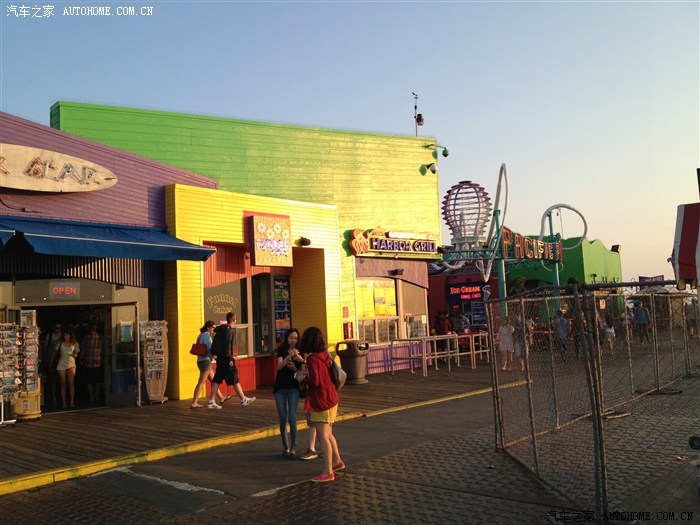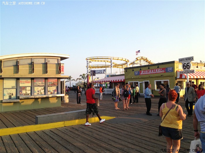 我坐飞机睡不着觉,虽然到了美国后已经很困了,但还是坚持不睡,时间尚早,决定驱车前往圣莫妮卡(Santa Monica)海滩去看日落。好不容易找到了个停车的地方,下车时忘了拿单反,到了海边才发现,只能用4S拍了。圣莫妮卡是R66公路的起点,海滩的栈桥上有很多ROUTE66的纪念品出售,原本你以为还会回来就没着急买,结果发现“一错过就不再”。栈桥上有家阿甘虾餐厅,香港那家我去过,虾真的好吃,可惜同行的两位姐姐都不想吃,只能作罢。最后在离海滩不远的地方吃了抵美后的第一顿晚餐-McDonald。