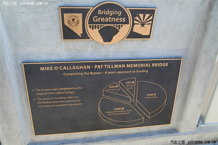 其实胡佛大坝拦截了大峡谷形成了堰塞湖,大坝上方的一座横跨峡谷的大桥连接了内华达和亚利桑那两个州。大桥全名Mike O"Callagham-Pat Tillman Memorial Bridge,2005年动工,历时5年完成,总耗资2.4亿美元,其中联邦政府出资1亿美元,内华达州和亚利桑那州各出资2千万美元,剩下的1亿美元由两州发行债券募集。大桥不收费,不知道怎么还债券?
