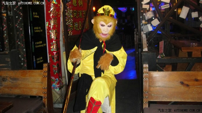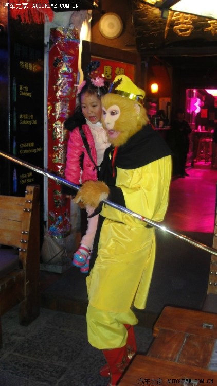 某酒吧门口的孙猴子,看着很可爱的,与他合影20元!让你照个够,并且还一直摆出不同的姿态!