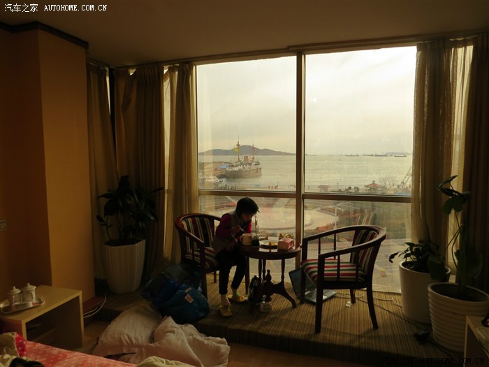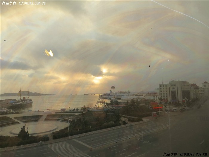大约在下午5点多到的威海。晚上什么都看不好,就随便找了一家酒店住下,累了一天了,没心情出去转了。早晨起来往窗外一看哈哈,真是应力那句话了歪打正着