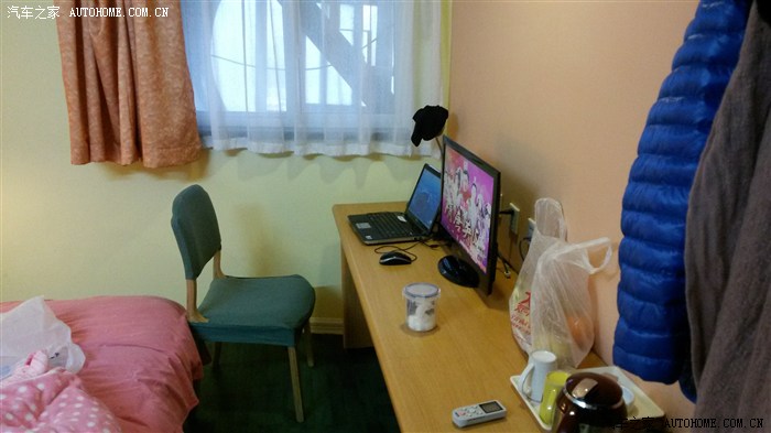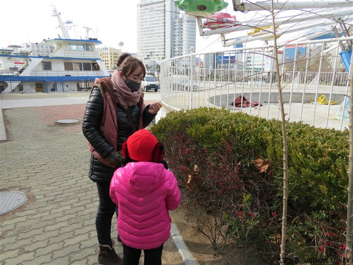 窗外隔着马路就是大海和船码头。今天威海的气温比较低,风比较大,但天是晴天,终于看到晴天了,心情豁然好了起来。