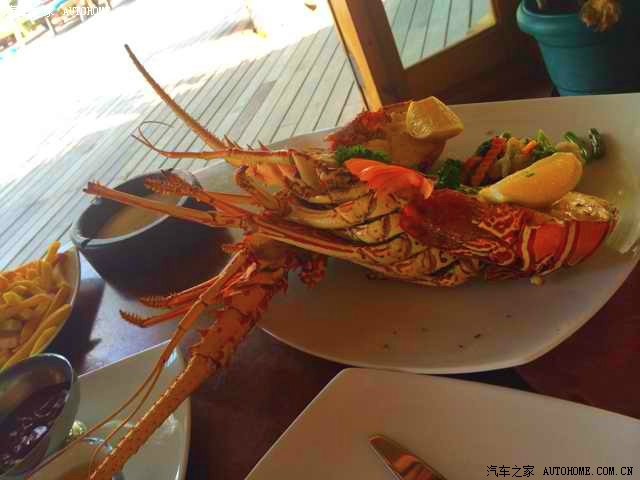 主餐厅也提供中餐,每人25美元。我们抵达的第一天中午就是吃了很有名的龙虾大餐,点一只龙虾送一个人中餐。岛上的龙虾分大小有几种,价格也不一样,最小的50美元一只,我们点的120美元一只的,够两个人吃的。