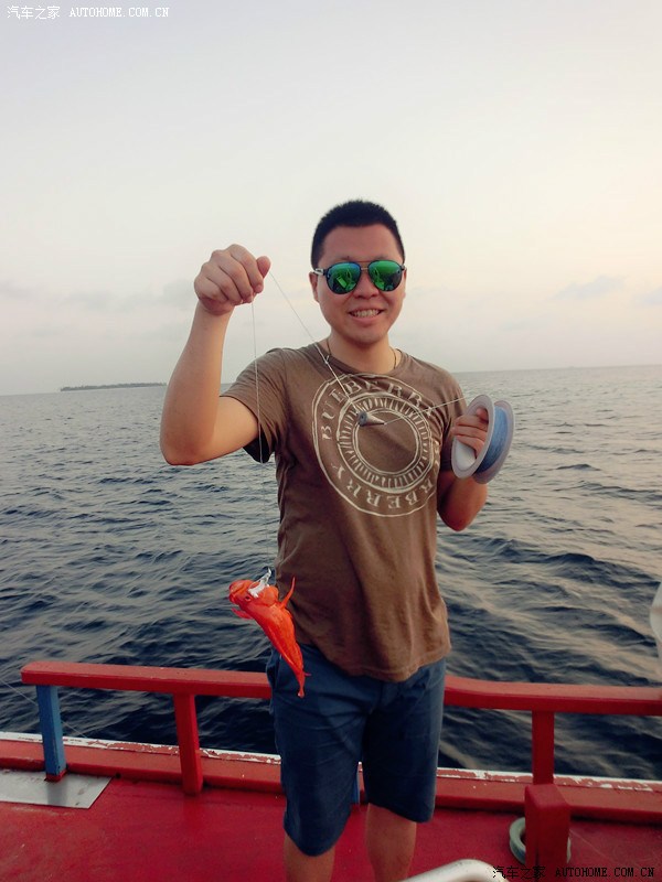 我这条小红鱼是全船钓上来的第一条鱼,后面我老婆又掉上来好几条有一条很大的,都成了我们蜜月晚餐的加菜,嘿嘿