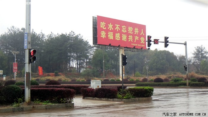 参观完叶坪景区,继续参观红井景区,路上的宣传口号:吃水不忘挖井人。