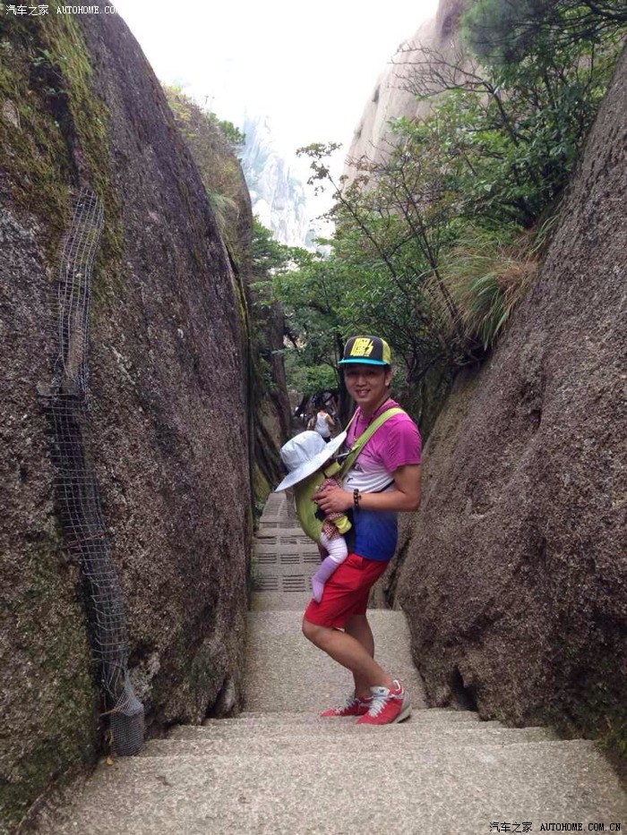 爬黄山的过程真的很辛苦,宝宝还是照旧睡了一觉,到了黄山的最高峰——莲花峰的时候,我放弃了登顶,因为腿已经累得挪不动了。我们决定分道扬镳,老公自己上莲花峰登顶,我抱着女儿到迎客松跟他汇合。自己抱女儿从莲花峰下走到迎客松也是一个艰难的过程,路上很多游客看到我自己抱着孩子在登山,都给我加油鼓劲,甚至鼓掌~其实他们都不知道前半段是孩子爸辛苦抱上来的~分叉路口,自己抱着女儿就是从这个路口开始走的