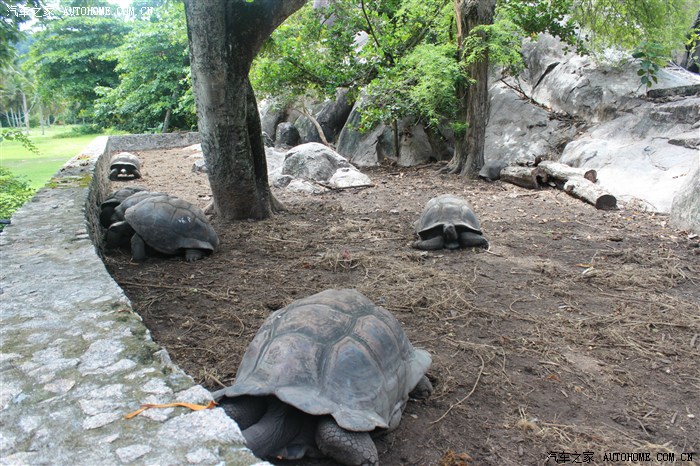 岛上的象龟园,可以拿腐败的叶子喂他们