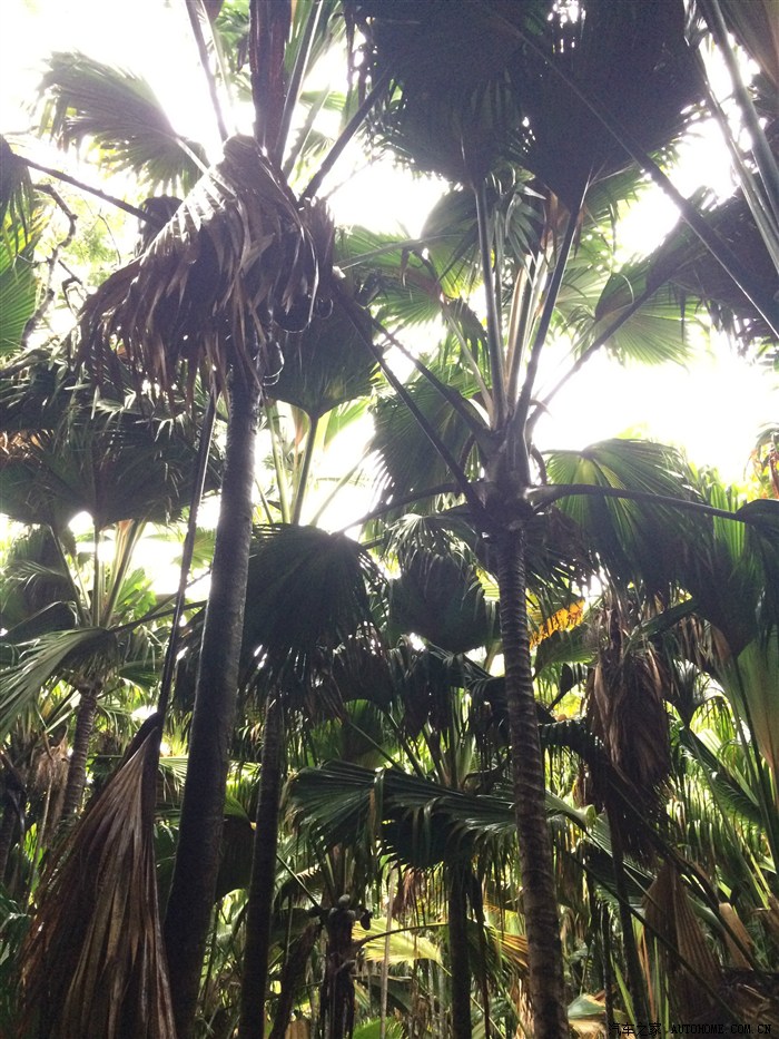 五月谷,世界上最小的自然遗产,七千多棵海椰子树,塞舌尔的国宝。我们当天出发的时候正在下大雨,到了五月谷公园雨还在下,但公园里的叶子很密,而且跟雨伞一样,在里边一点也不会淋到。