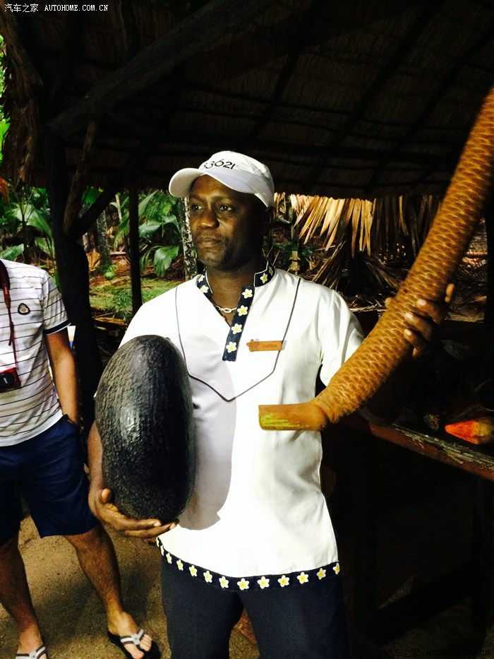 导游小哥,左手公椰子,右手母椰子,相当形象