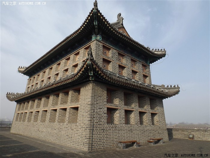 望洋楼为箭楼形制,砖木结构,九脊歇山顶,面阔三间,进深两间,建筑面积326平方米。
