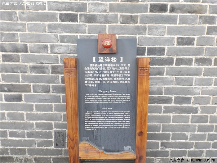 望洋楼始建于明嘉靖八年(1529年),为山海关城南门城楼,因其南向大海而得名。1933年1月被日军炮火炸毁,1955年春拆除,2004年复建。