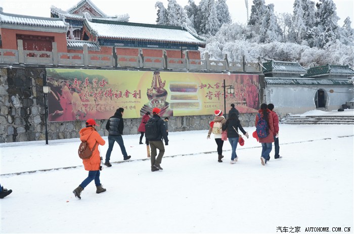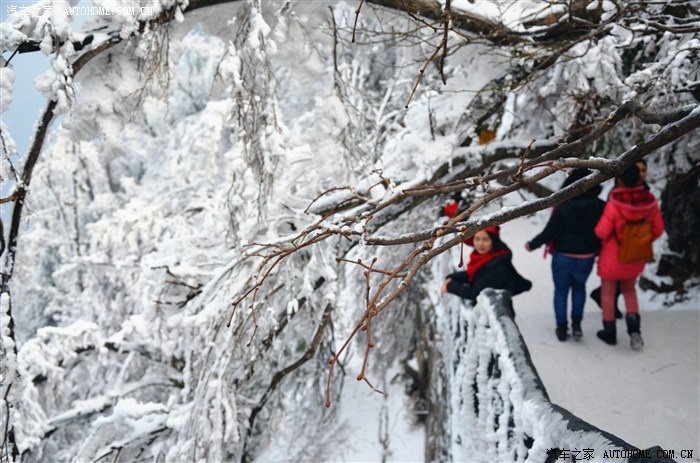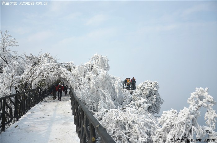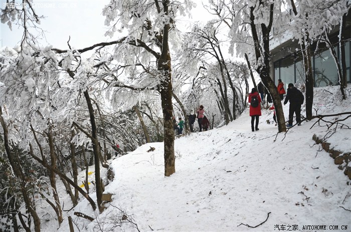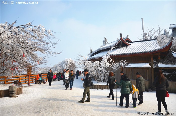 到达山顶,游人们在欣赏雪景和拍照留念~~·