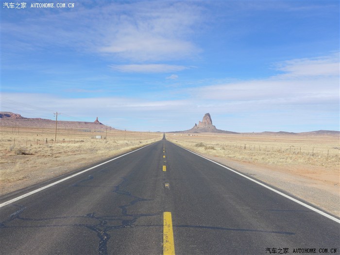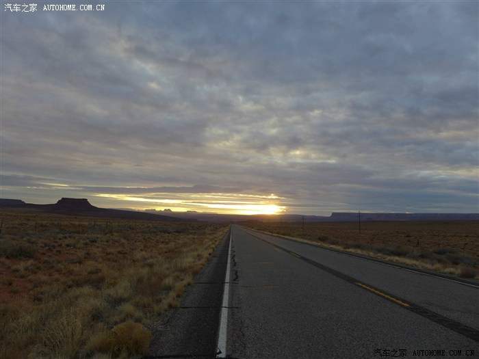 由于原计划在佩吉住下,但发现有点可惜,准备直接到约500公里外纪念谷去,起了个大早,从布莱斯12号公路西行接89号公路南下到KANAB东行经过佩吉市(PAGE)接98号公路东行,再接160公路到KAYENTA转163公路北上,在路上就能看到纪念谷公园了。有人会问为什么不在布莱斯北上再东去拱门公园再南下去纪念谷,这样会省下约700来公里,原因就是我在大峡谷定了酒店,刚好达到2天内不能退订的规定,不去的话网站会一样扣钱,想旅游就瞎转,就想起去纪念谷了,去纪念的路上,从优他进入亚利桑纳州后,很多路段就是老66号公里,路一般都笔直的,把方向把好,开到140公里,睡上5分钟都不会跑出路基。开了几百公里没见到一个人在马路上穿行。