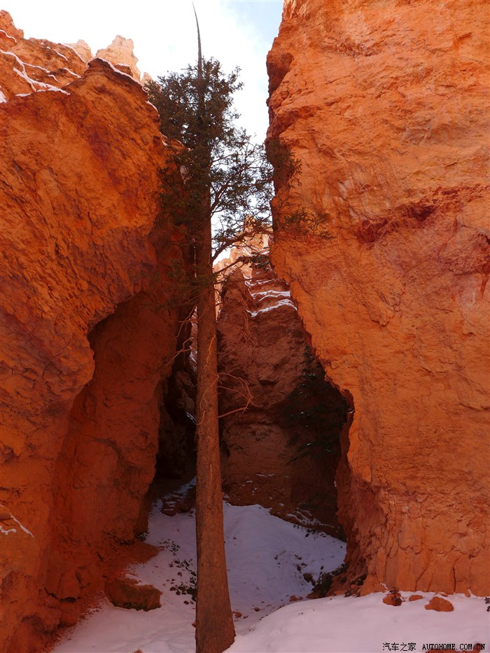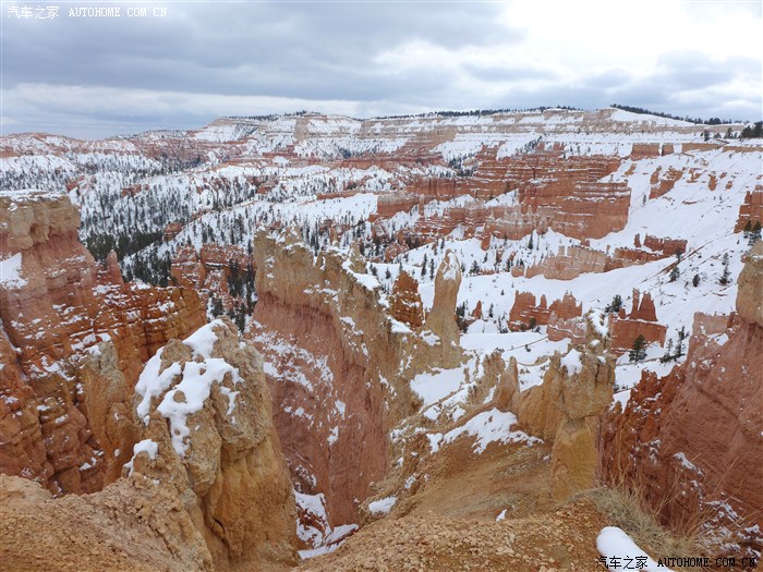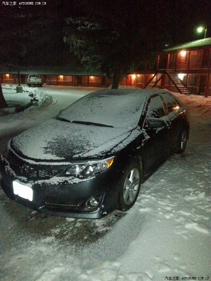 当天晚上住在布莱斯公园口的汽车旅馆,半夜一看,车被雪盖了。