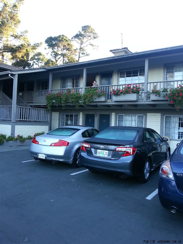 游完17英里后,用BOOKING网定了卡梅尔小镇的汽车旅馆,卡梅尔有游记说张大千(还说了句:可以居!)在这里住过,离蒙特雷也只40来公里吧。汽车旅馆很舒服。中间的凯美瑞就是我们租的车,在国内我开的是凯美瑞七代,所以一切很熟悉,外型有点不一样。