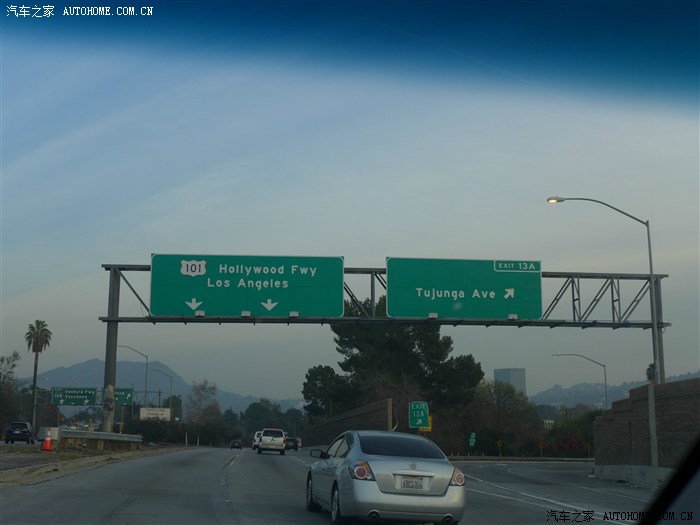 好在这段101公路差不多也是沿海岸线到洛彬矶的,终于看到LA分路牌了,天使之城我们来了。