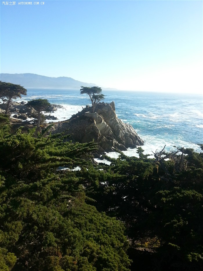 游蒙特雷一定要游17英里海岸线,这是个私人的公园,要收费每车10刀,但真值得一看,17英里海岸的孤独树是被注册商标的,有像黄山的迎客松的样,重庆的一棵树景点。下面这张就是用手机照的,将就看了