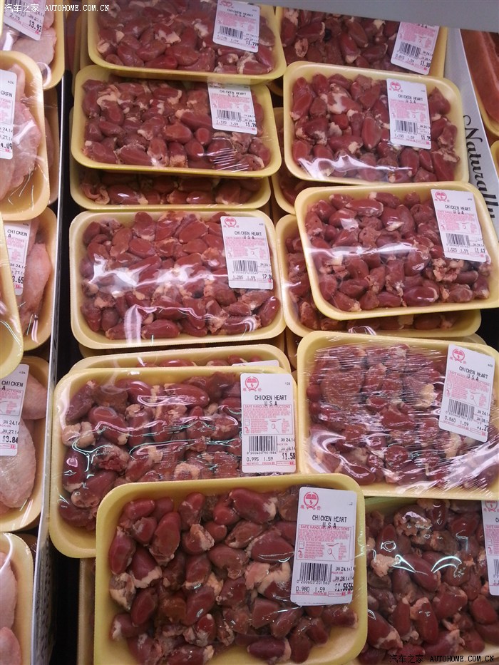 深入了解嘛,当然也去超了解当地物价情况,与他们的收入相比,真心便宜!大家不要看错了价格牌上的前面是“$”符号,那一盒鸡心是1.58刀,不是11.58刀!