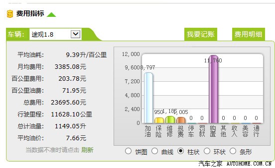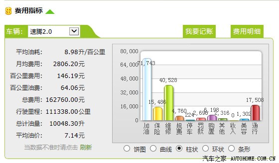 最后推荐各位车友一个网站,香山理车网。www.liche365.com 另送上本人两台车的费用总计,供参考,途观每公里比速腾费用高0.07元,不过高速跑的稍微多些。