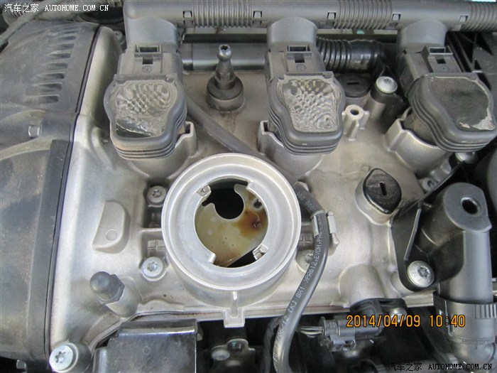 这次还好,有轻微油渍,不过不像是渗漏出来的,可能是机油加注口出来的。索赔之后的油气分离器及其结合处也没发现新的渗漏点。
