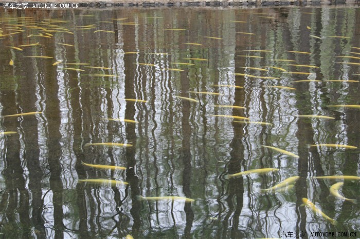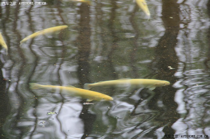 几百条虹鳟鱼清晰可见,对面的桥叫戏鳟桥
