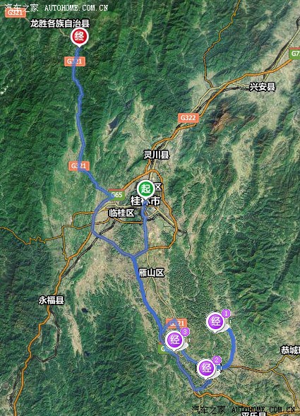 先来说说我的出行线路吧,最终计划的出游行程是这样的:先是坐灰机到桂林,然后第二天由桂林(起点)开车前往兴坪古镇(经1),夜宿阳朔(经2),晚上去阳朔西街。第三天去阳朔的十里画廊游玩,第四天前往世外桃园景区(经3),晚上直奔龙脊梯田(终点)。第五天早上起来拍龙脊梯田日出,拍完日出还车走人。怎么样,这个计划是不是很完美?