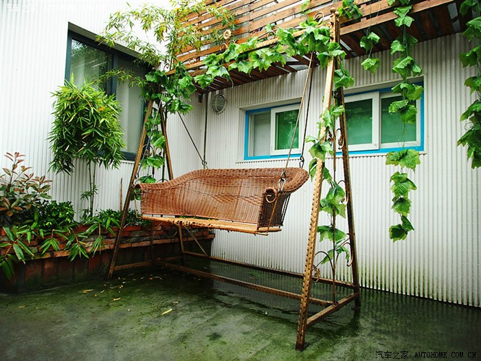 房间外面还有秋千,想象着穿一袭白色长裙,坐在这上面慢慢摇,该是很美的画面。
