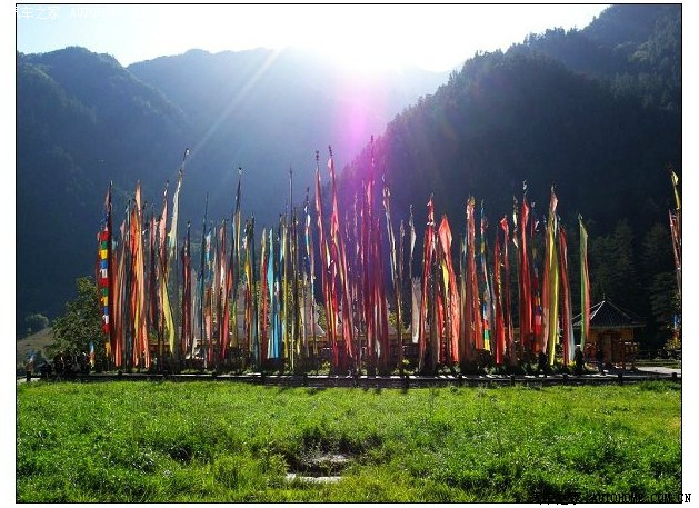 阳光下林立的经幡
