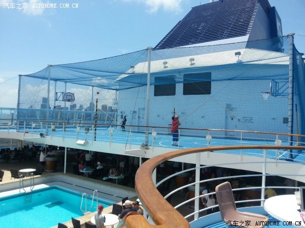 顶层甲板,有篮球场,有小型高尔夫!大中午的,真有人顶着大太阳投篮啊!
