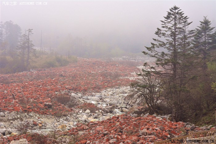 天下奇景 红石滩,这里满河坝的红石从远处雪山顺河滚滚而来,可惜天降大雾,看好景只待下盘 来