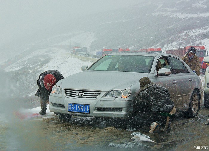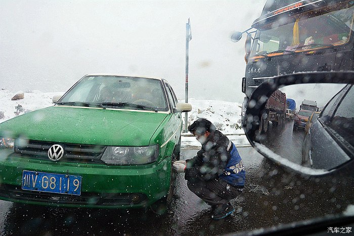 等到五月四号返成都,一大早就遇到折多山大雪封山,冰雪地那个滑哟,大货车都溜下了沟。两驱车纷纷挂上防滑链,咱小三是两驱,挂不挂呢?一打听,当地人给挂链子,张口就喊四百元,打劫呢,活抢人,不干,直接上山!二档,吊着油,慢慢走,不打大盘子,轻易不踩煞车,终于,小三稳稳当当,又过一关。路上遇见对面来一劲炫兄弟,挂着黄色的塑料防滑链,开窗,亲切地打了个招呼,路上见一兄弟不容易呢!你在坛子里不?出来应一声。
