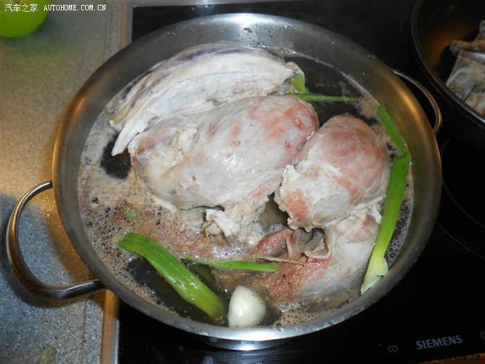 第一次只放少许葱蒜和料酒,第一次佐料很快会被弃掉,只为除腥气味