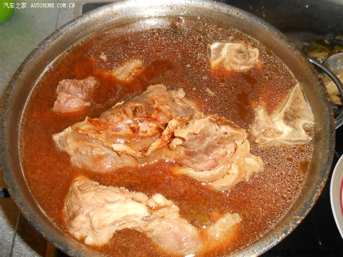,呵呵,牛腔骨一同入锅,使汤味更加浓重,酱好的肉也会更加好吃,也是一并在批发市场买的