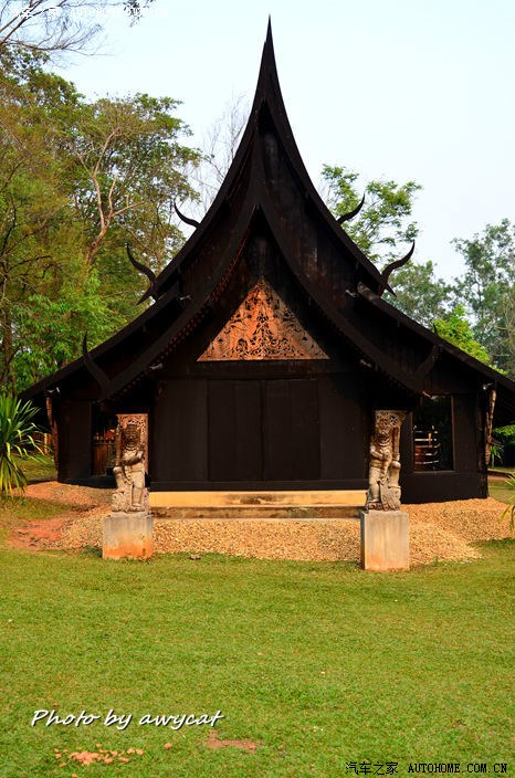 旅行的首站开始于----清莱的黑屋博物馆(Wat Sii Dam),国人习惯称之为黑庙,其实并不准确。黑屋博物馆由Thawan Duchanee先生设计建造,历时36年,由大小三十多座形式不一的建筑组成,因为都以黑色为主基调,所以叫做黑屋。黑屋博物馆收集了大量以地狱、死亡、黑暗为题材的展品,把远古时代的兽骨以及原始部落的猎杀工具,古董和标本等,用现代艺术手法融合成各种艺术品。