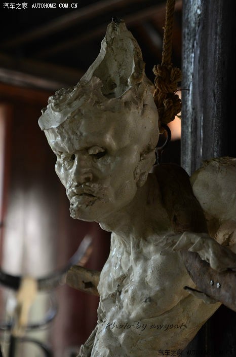 ▲ 艺术家的木雕作品,总觉得这个雕像表情很诡异,不能直视,不信你试试。。。