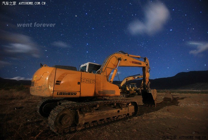 【图片说明】:路边工地上,月光照耀下的工程车。北斗七星闪烁在车顶上方的夜空。【图片说明】:又是我的小道具——机器人瓦力,头顶是北斗。站在推土机上的瓦力,眼神还是那么无助,茫茫然的望着工地上方的夜空。小瓦力终于跟它的大个子兄弟团聚了。 只是在拍摄时,小瓦力被现场的狂风吹掉了好几次,带来的直接后果就是捡起来重拍。一张看似简单的片子,却费了不少劲。