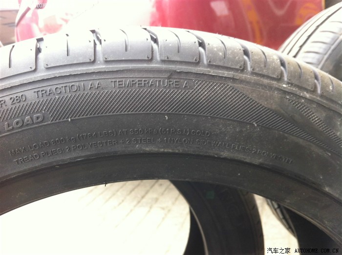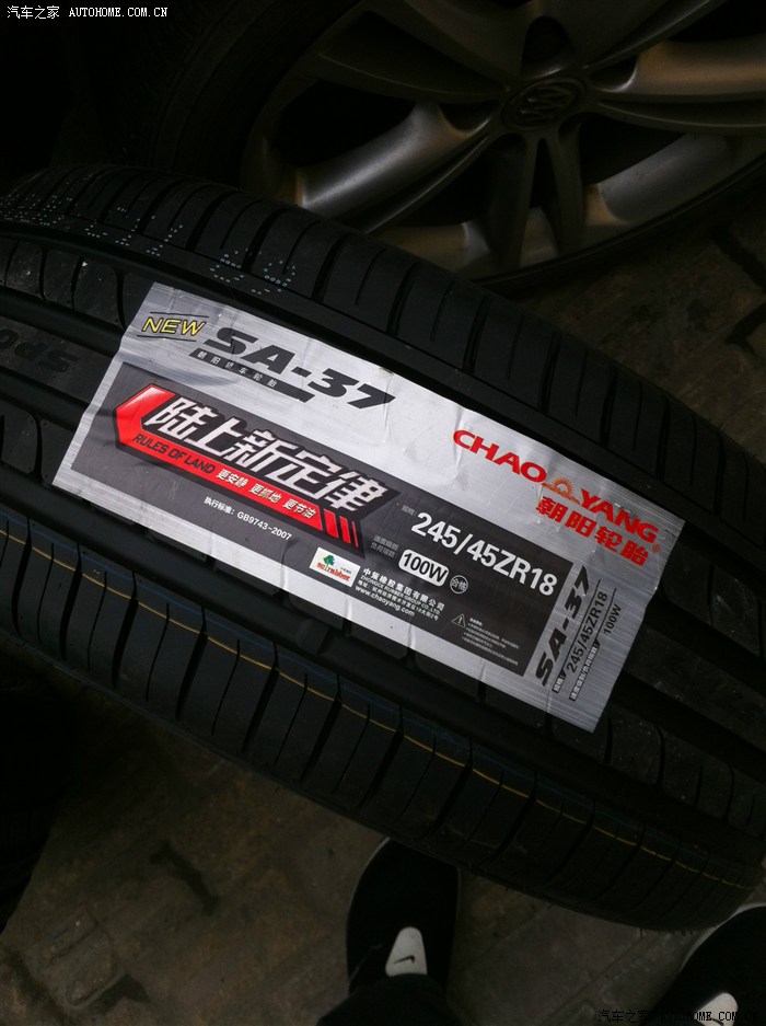 最后来几张换新论坛的照片,换了国产朝阳SA-37,不知道为什么很多号称自己很懂的人对朝阳是嗤笑,建议先去了解了解米国反倾销世界再来评论,另外我对比了原车的普利司通,普利司通侧壁是2层聚酯纤维+1层钢丝网+1层聚酰胺纤维,朝阳SA37是2层聚酯纤维+2层钢丝网+1层聚酰胺纤维,厚道,价格也厚道,4个245 45R18的轮胎,才2620,洋牌子都一边去把