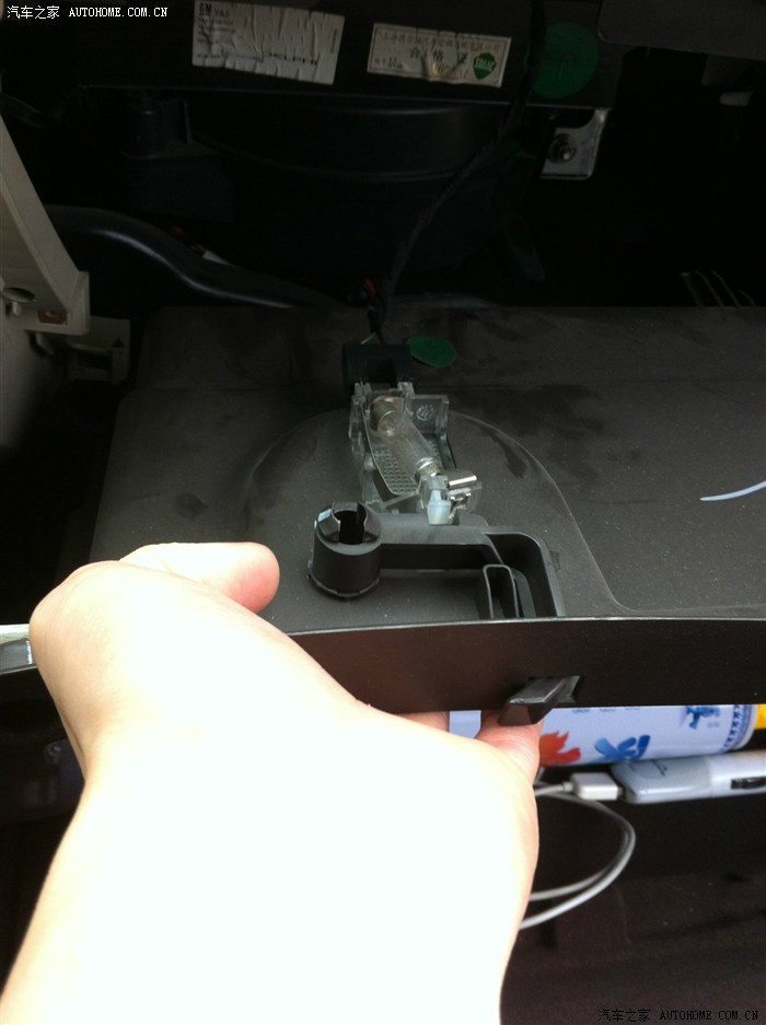 首先把这个手套箱的灯的线给拔掉
