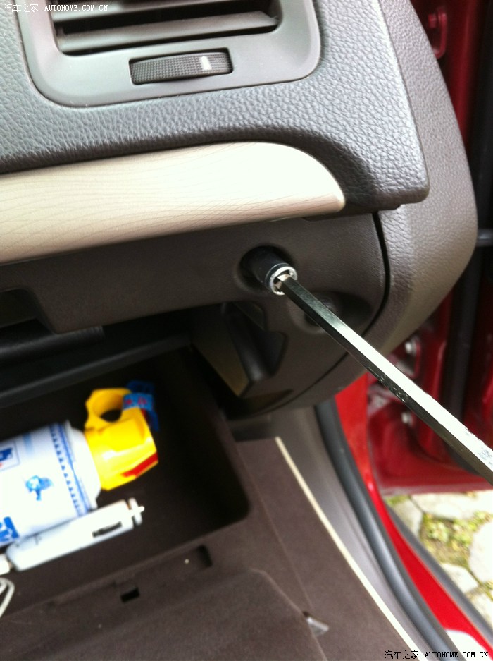 洗空调前需要准备一个六角的7号套型,要拆手套箱的4个螺丝。我的7号套筒不知道丢哪里去了,所以找了7.5的套筒,虽然有点大,但是勉强能用