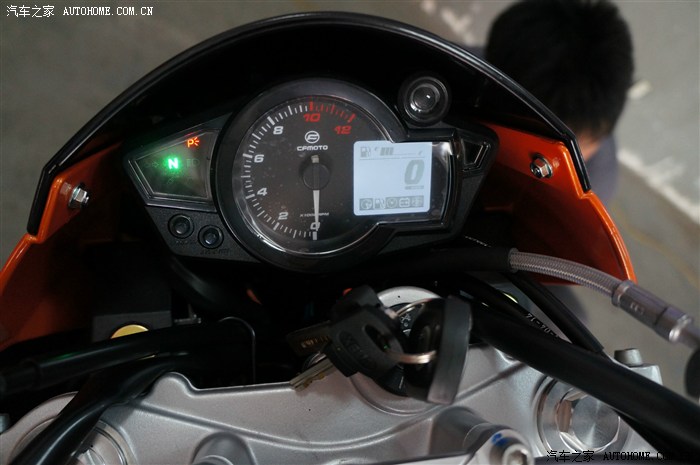 KOSO仪表盘,2014款的改进之三,反应可以接受,显示全面,12000的转速通常不会拉这么高,因为双缸的声音并不像四缸浑厚,缺少低音,在超过6000转就谈不上享受了。
