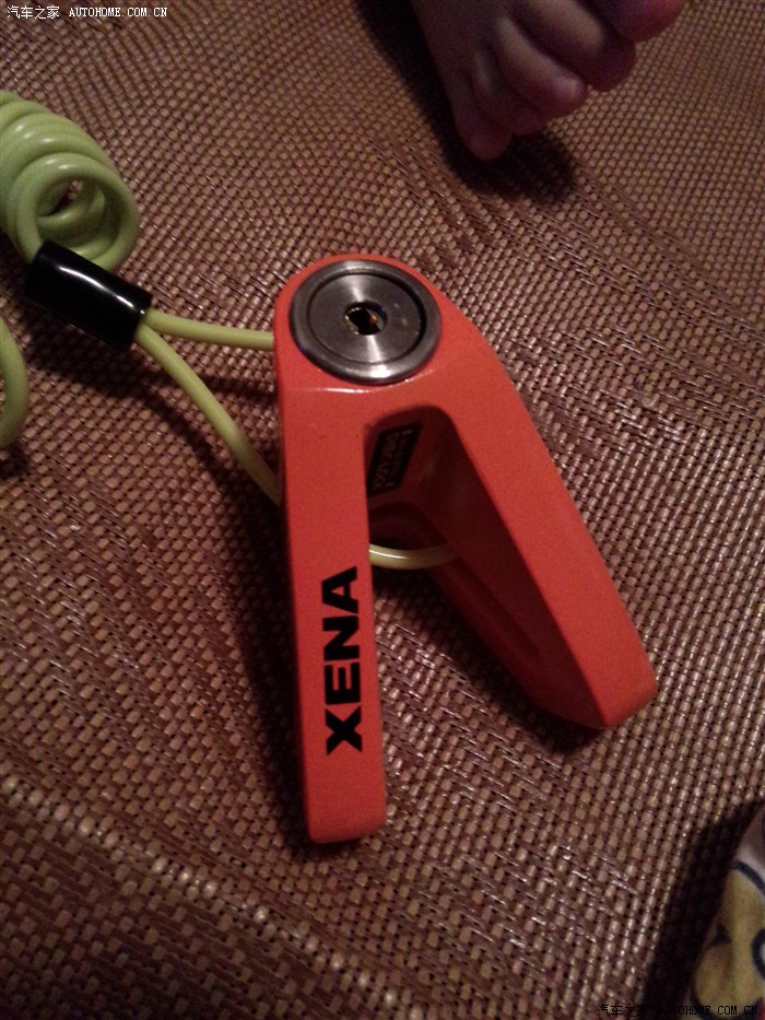 英国XENA的碟刹锁,选了橙色的配合车身,不贵,好用,大家都用它