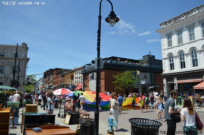 同性恋游行。 还有个哥们挺着大肚腩穿了一身蕾丝。右手边是一个旧货展销,忙着淘旧货,忘记照了。