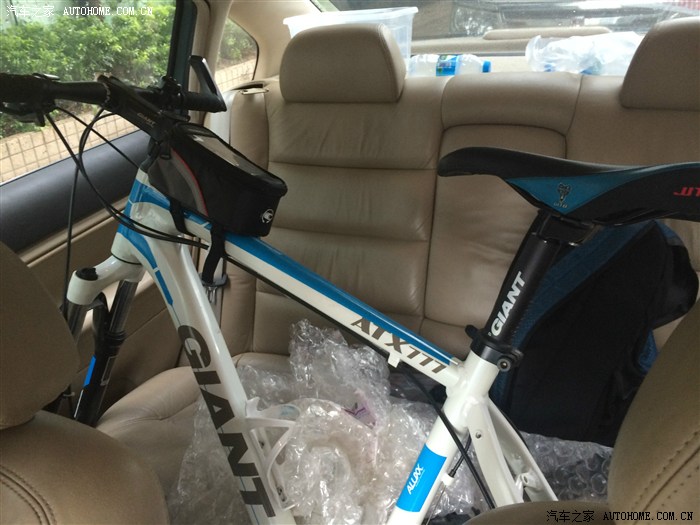 这19寸的车架子略大,而且不拆后轮我车根本后备箱放不下,每次带出来玩只能这样扔到后座,唉,我这傻车后排座椅还没法放到。。只能这样放了。。。看来得换车了。。。