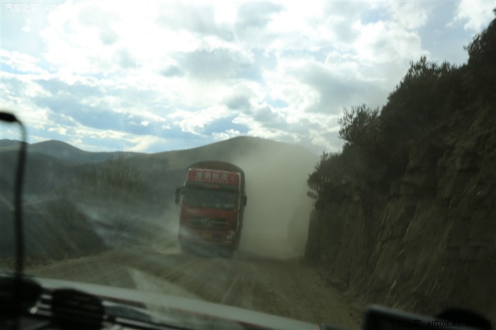 从这里开始仅有的60公里老318土路,超车绝对的惊险刺激,那叫一个尘土飞扬