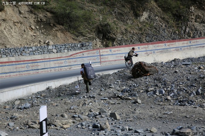 这位兄弟必须好好赞赏一下,绝对牛叉的人,因为是弯道,我们没有停下与之交谈,其实我们很想给与他点物质帮助,钦佩,比那些个说徒步但到处求搭车、伸大拇指的强百倍!