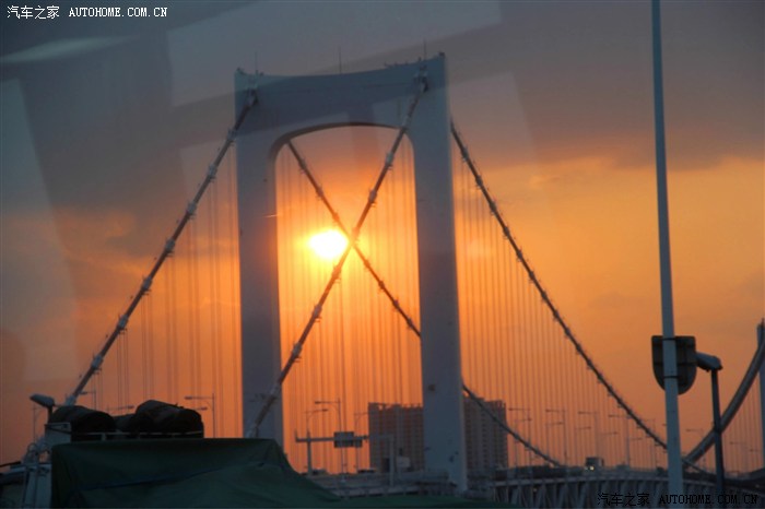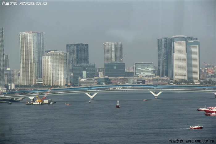 在彩虹桥上看东京湾,隔着车玻璃拍的,不够清晰