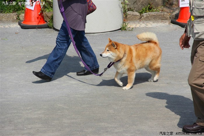 一个日本mm牵着4条小狗,推车不是坐婴儿的,是拉狗狗的,呵呵,狗狗真幸福