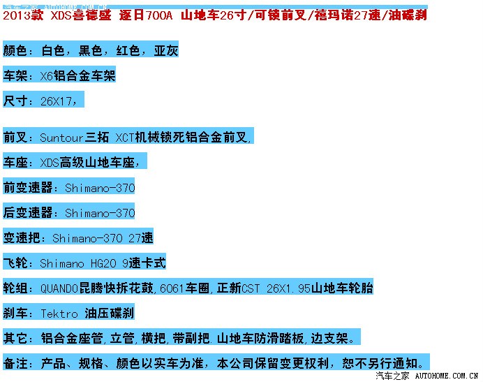 就上网搜了一下 从此一门心思 关注XDS 从逐日700A、英雄310、333、350到传奇300、500,(后面给大家发配置对比表)价位越看越高 最后给自己定位 入门山地车 价位 落地2000内 最后英雄310 入选 逐日700A 配置比310高 但是27.5的车胎、内管走线是逐日所没有的 车型定的17.5的卖家说16的也行 但是不越野的话 车架大点没关系