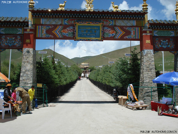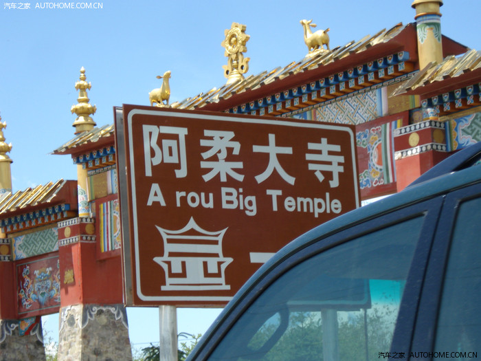 沿着通往祁连县城在道路继续前行,路边出现了一块大牌子,上书“阿柔大寺”,同行的车友的岳父对寺庙文化比较感兴趣,非要进去看看,我也就顺便进去观摩了一下。